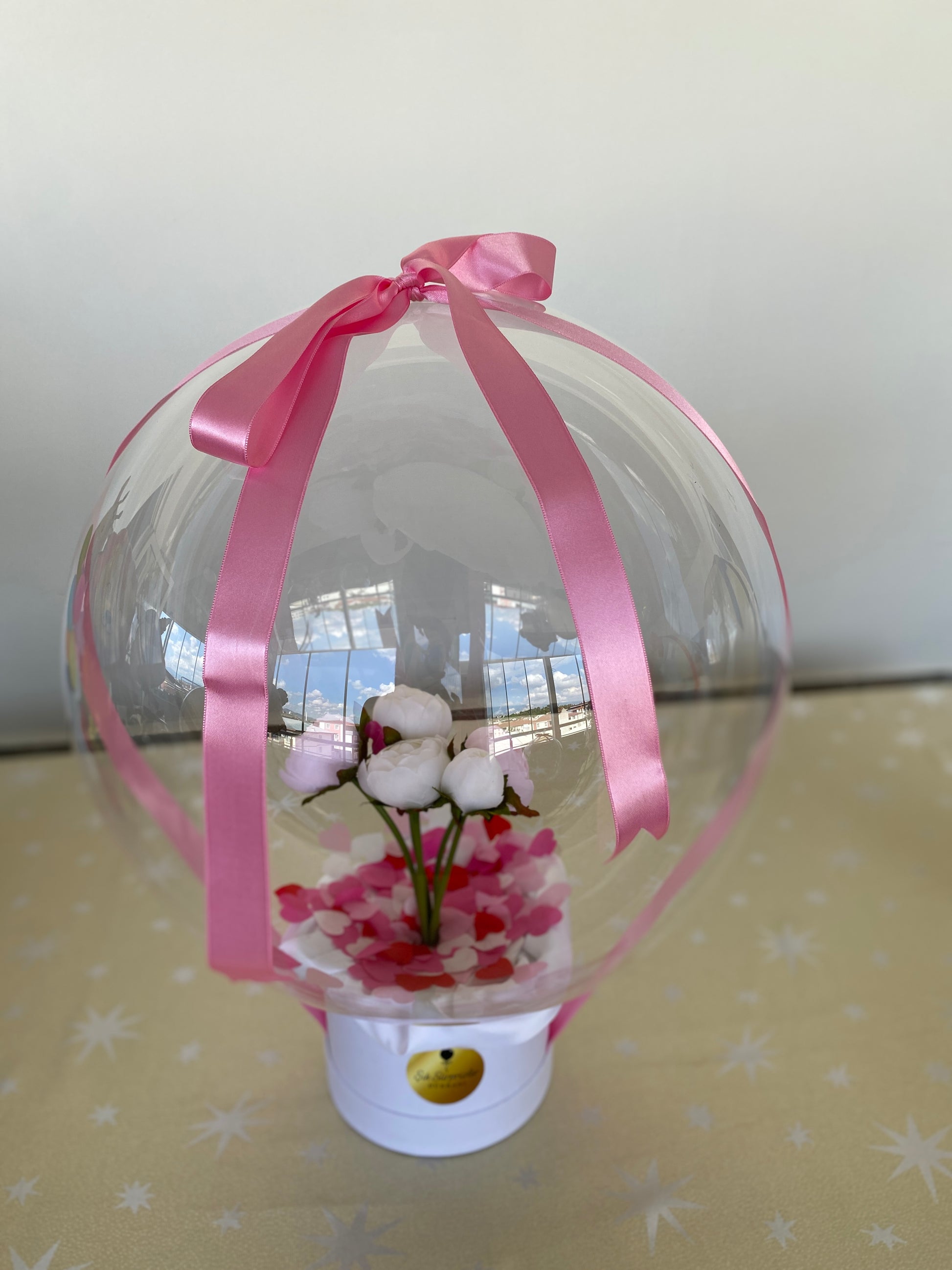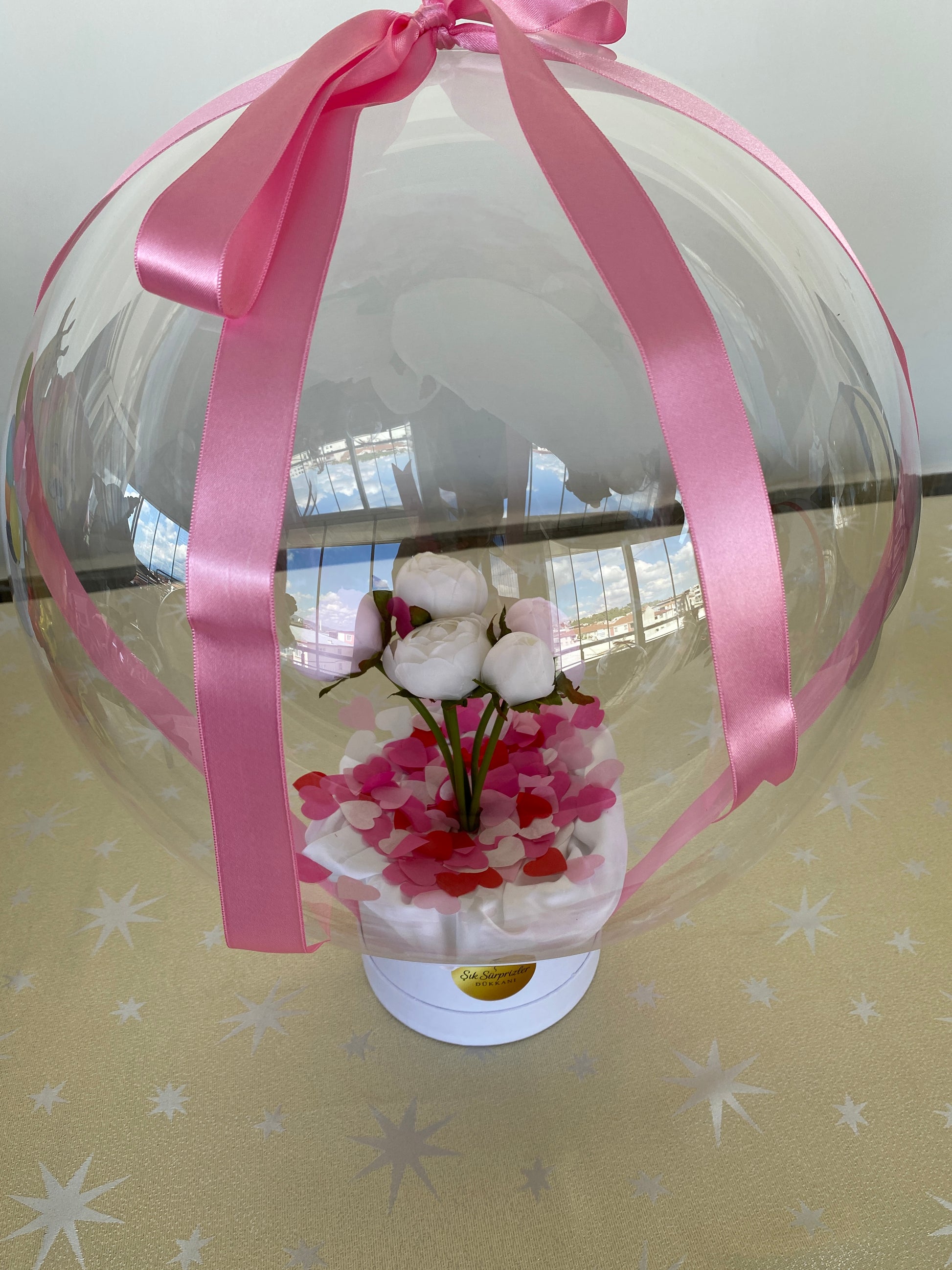 Sevdiklerinize unutulmaz bir sürpriz! Özel tasarım Bobo Balonlar çiçeklerle birleşiyor. Üzerine istediğiniz mesajı yazabiliriz.