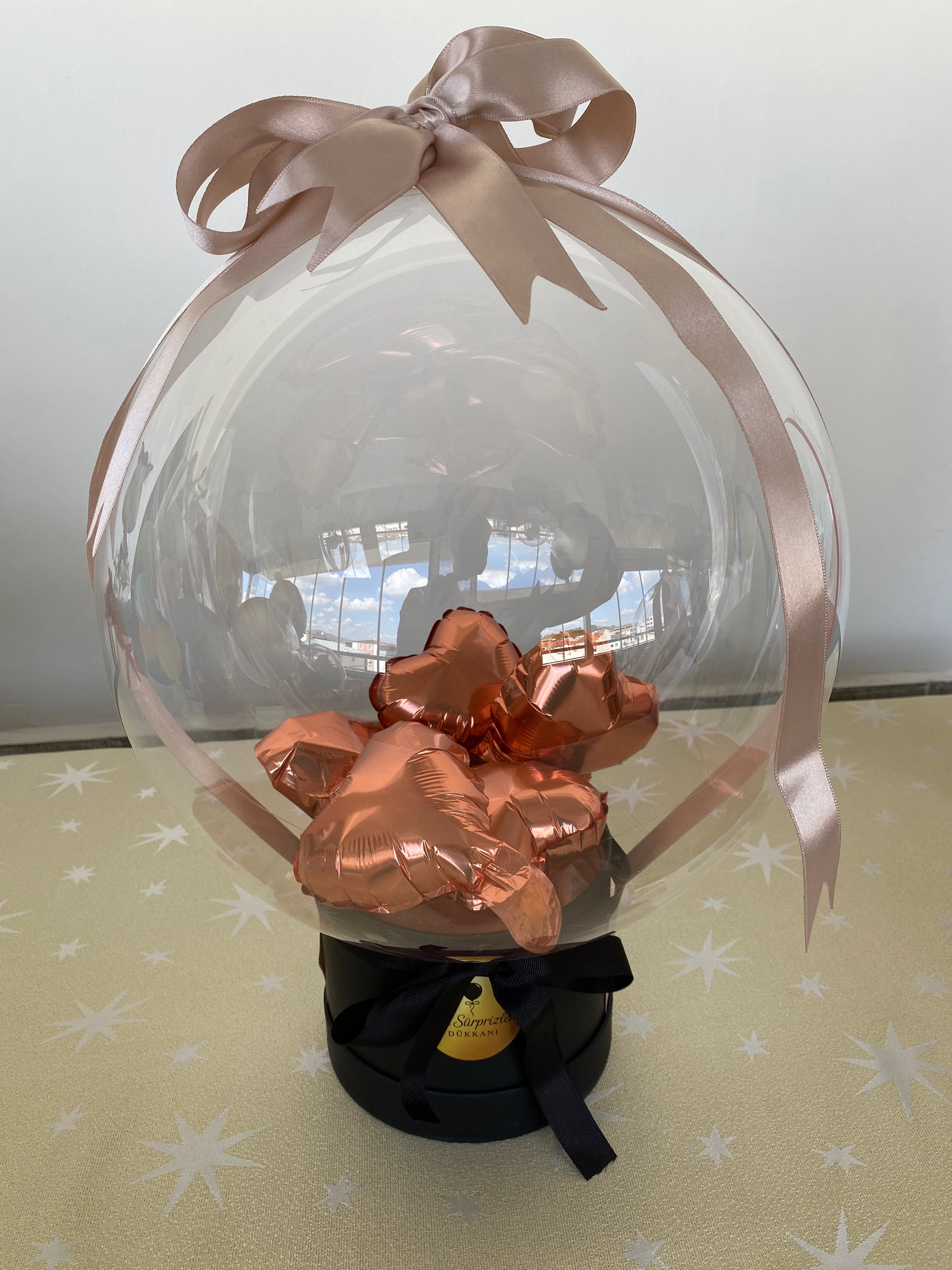 Sevdiklerinize unutulmaz bir sürpriz! Özel tasarım Bobo Balonlar çiçeklerle birleşiyor. Üzerine istediğiniz mesajı yazabiliriz.